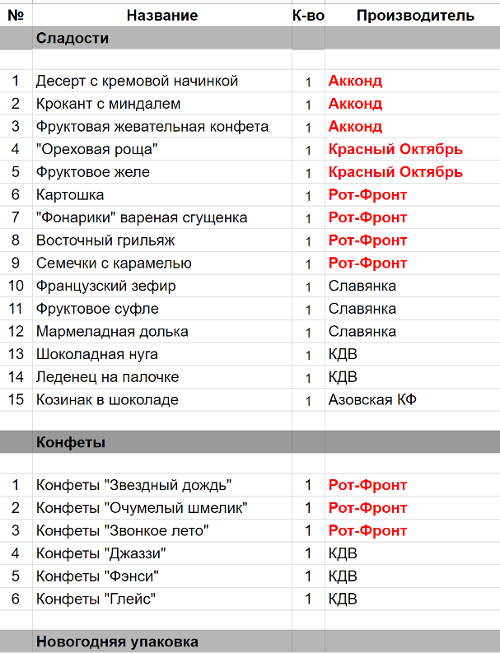 1. Проверить, можно ли внести изменения в состав подарка. Если нет, то скорее всего наборы были собраны еще летом из конфет, произведенных еще раньше