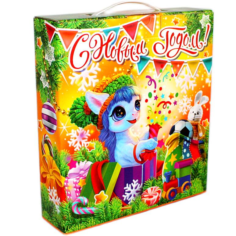 Детский новогодний подарок в картонной упаковке весом 1000 грамм